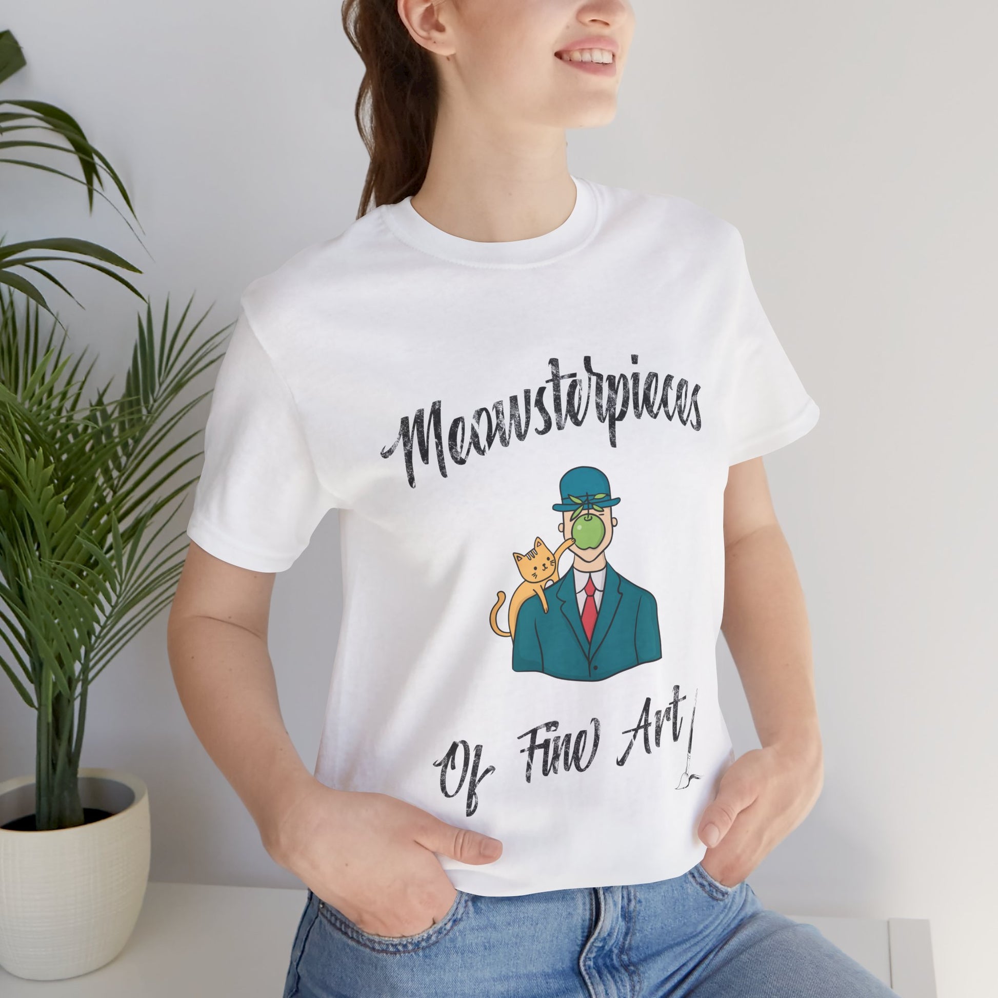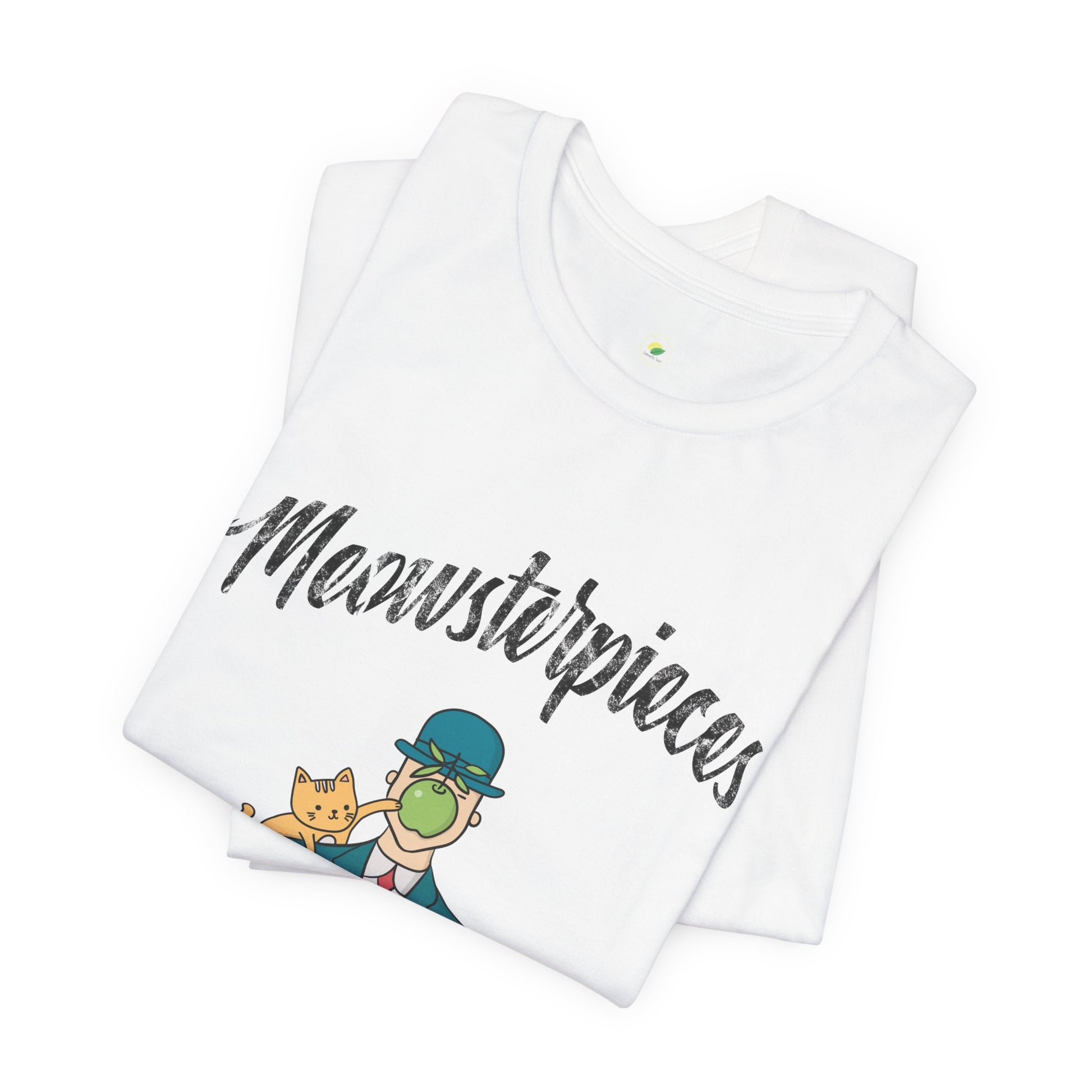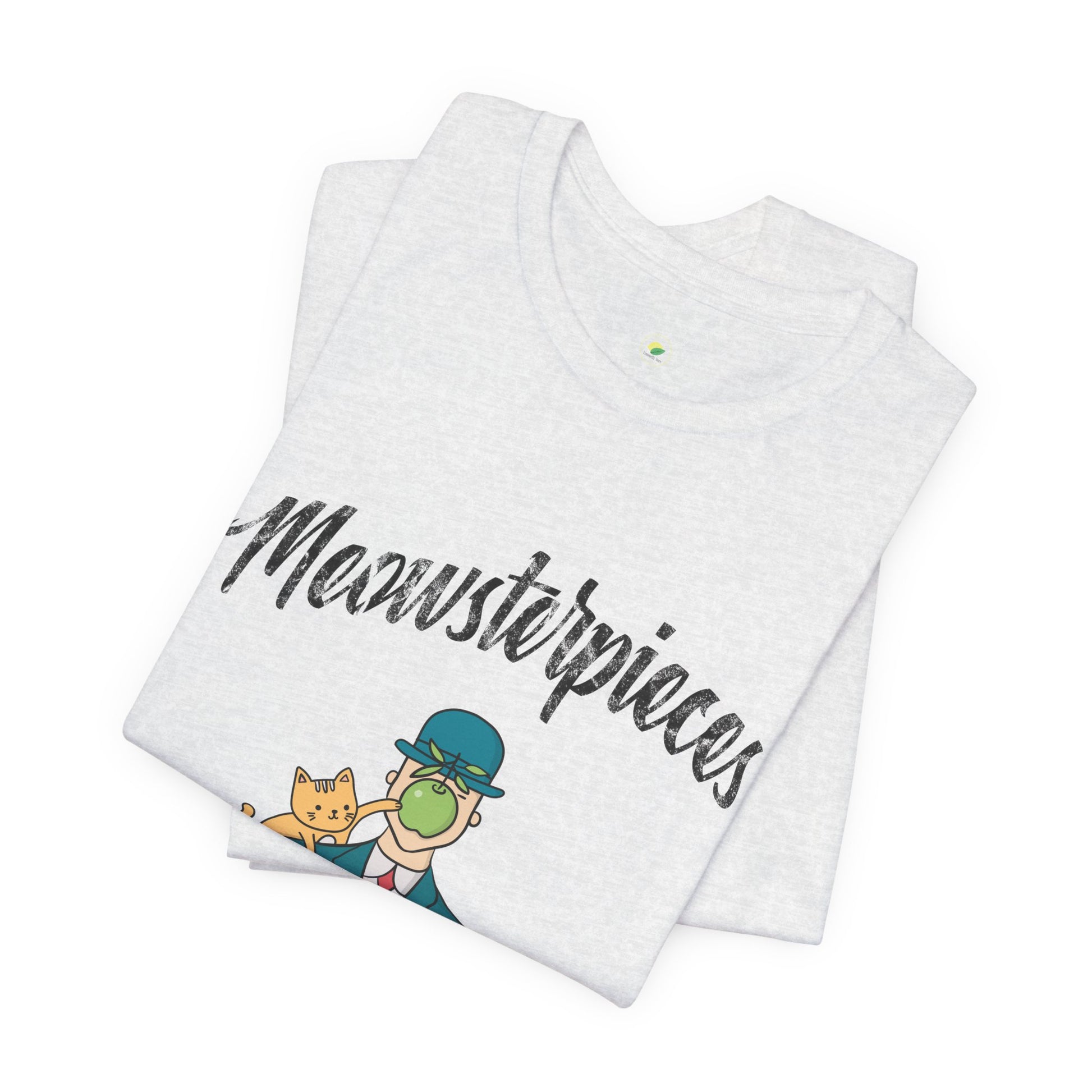 A unique T-shirt featuring art designs for cat lovers. This T-shirt gives off a fun and casual vibe, perfect for everyday wear or a relaxed weekend. It is relevant for cat enthusiasts and anyone looking to add a quirky touch to their wardrobe. Ideal for casual gatherings, cat-themed parties, or as a gift for a cat lover's birthday or International Cat Day.