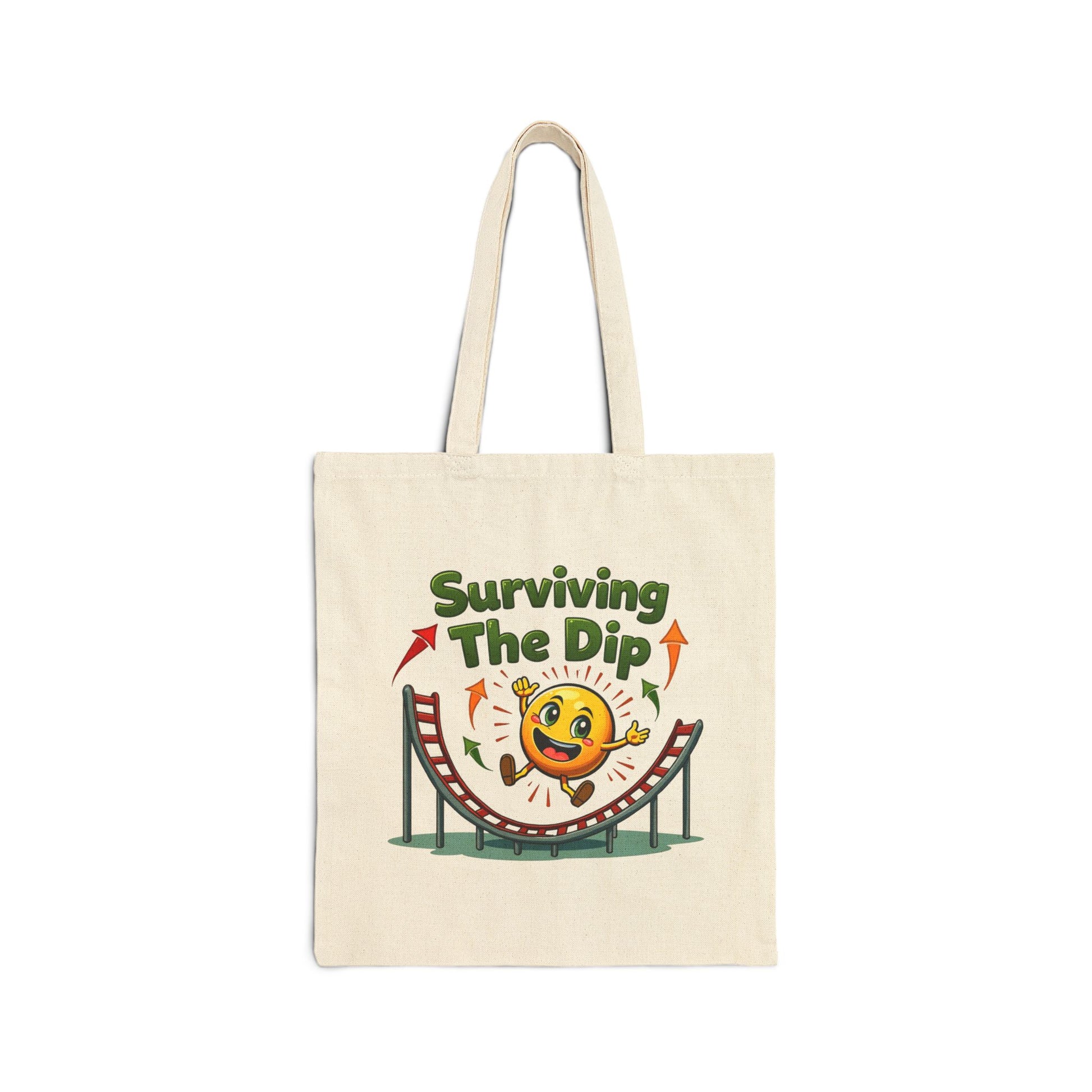 The Surviving the Dip Tote Bag is made from 100% cotton canvas, providing a strong and durable fabric for all your carrying needs. With flat corners and reinforced stitching on the handles, this tote bag is perfect for adults looking for a stylish and practical accessory. Whether you're heading to the beach, farmer's market, or work, this tote bag is versatile and can handle it all. Perfect for everyday use or as a thoughtful gift for a friend.