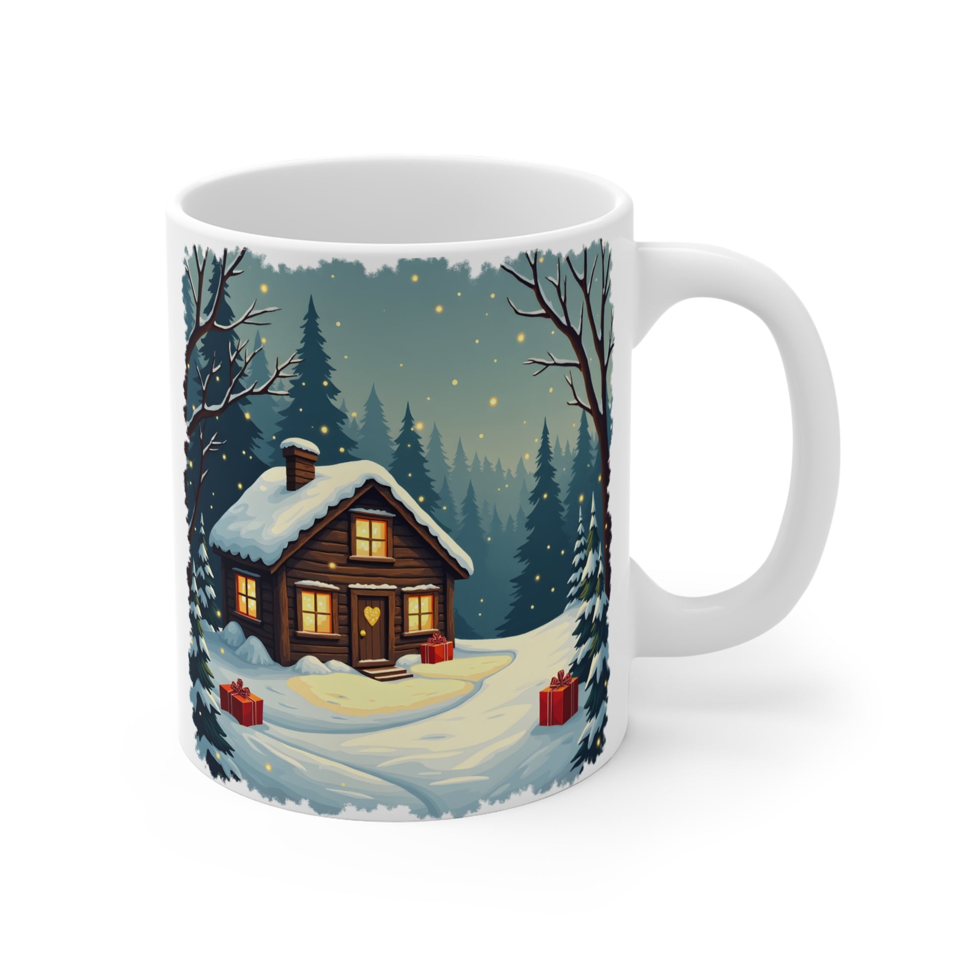 Winter House Ceramic Mug — 11oz Cozy Holiday Coffee Cup
