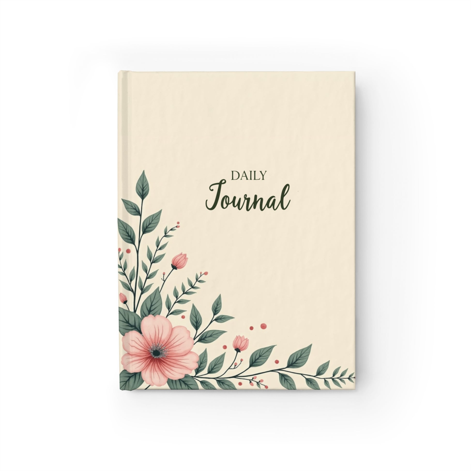 Floral Daily Journal perfect for writing with a flexible spine that lies flat on any surface when opened. The matte laminated cover provides durability and a smooth look. Ideal for journaling enthusiasts looking to add a touch of nature to their everyday routine.