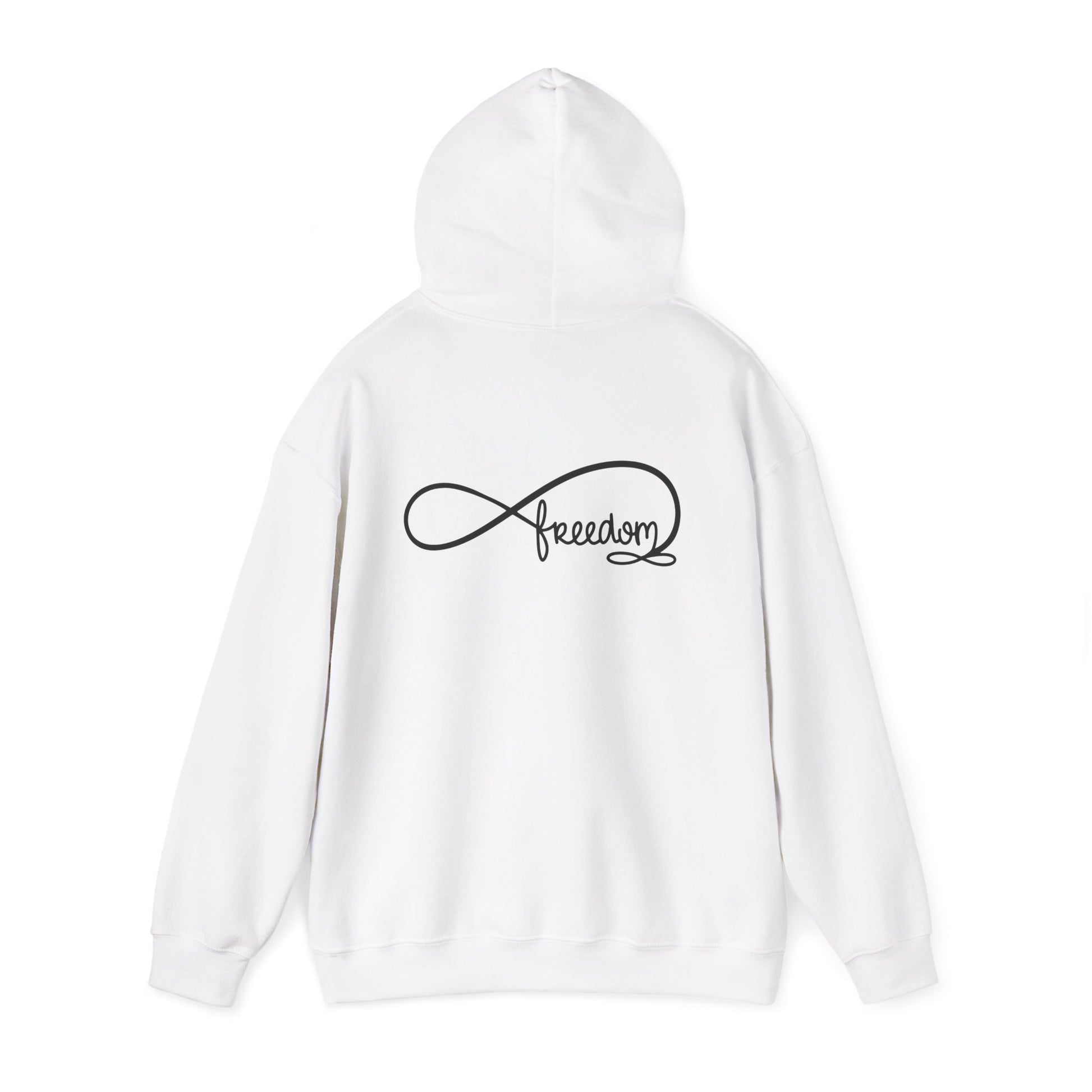 Freedom Infinity Hoodie — Minimal Script Back & Chest Logo