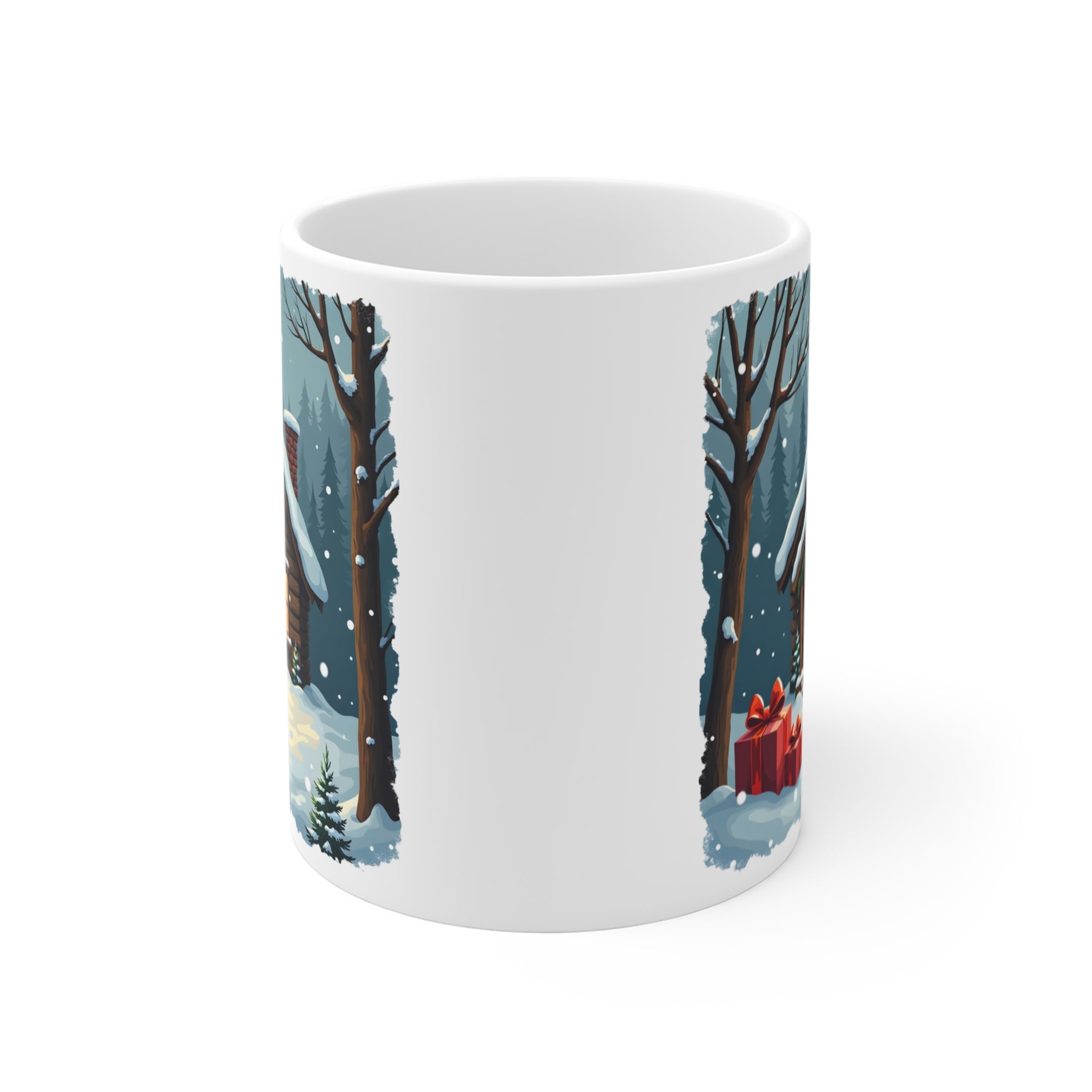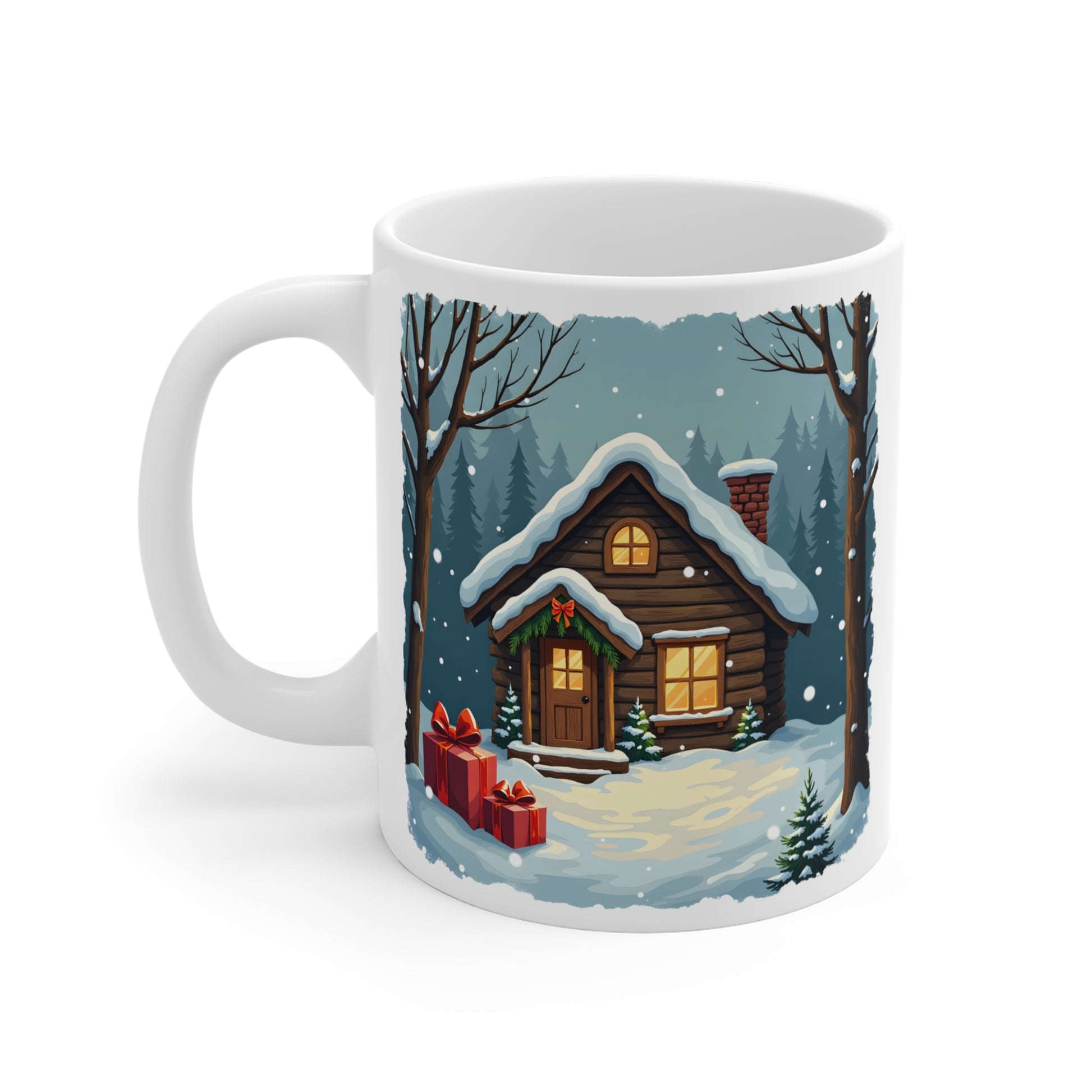 Winter House Ceramic Mug — Cozy Snowy Cabin 11oz Coffee Cup